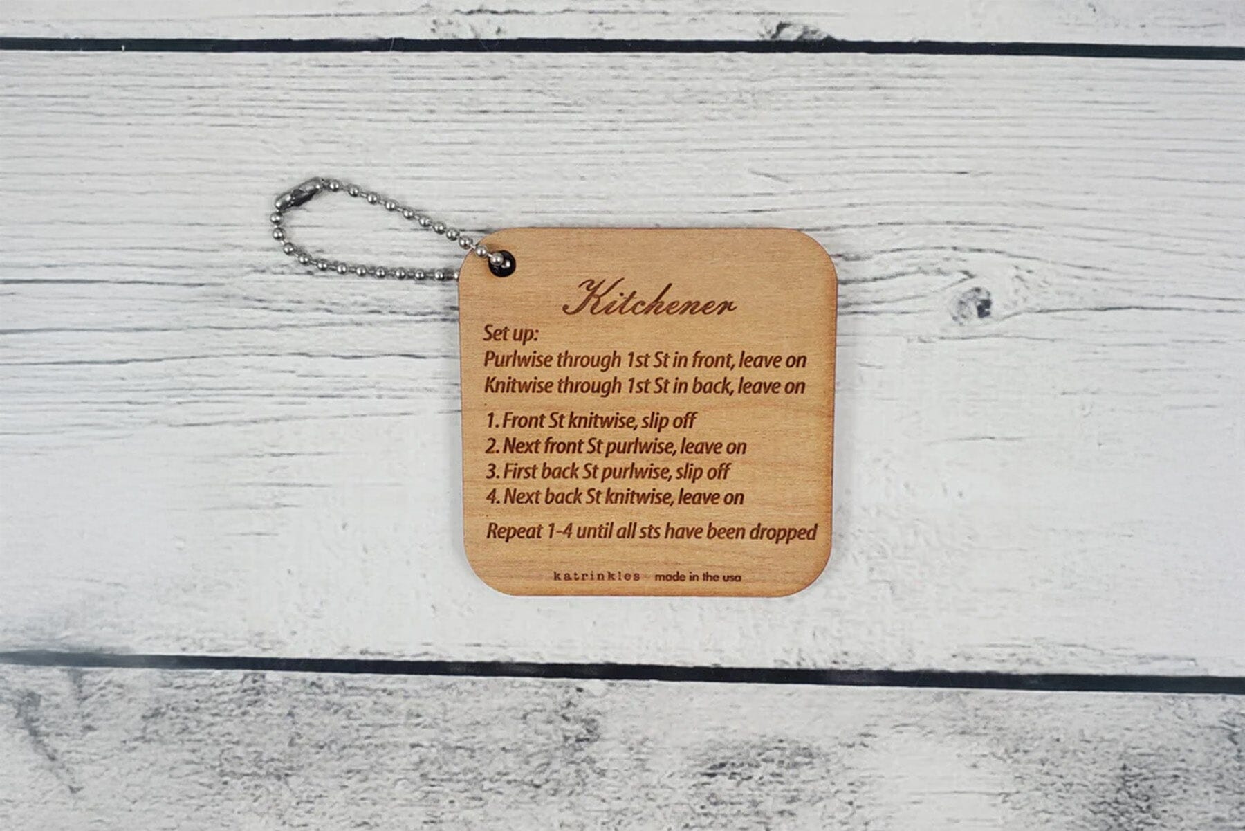 These lightweight, 2.5" square Mini Tools are compact and handy to have along, whether you tuck them inside your knitting bag or hang them from the ball chain loop outside for easy access.