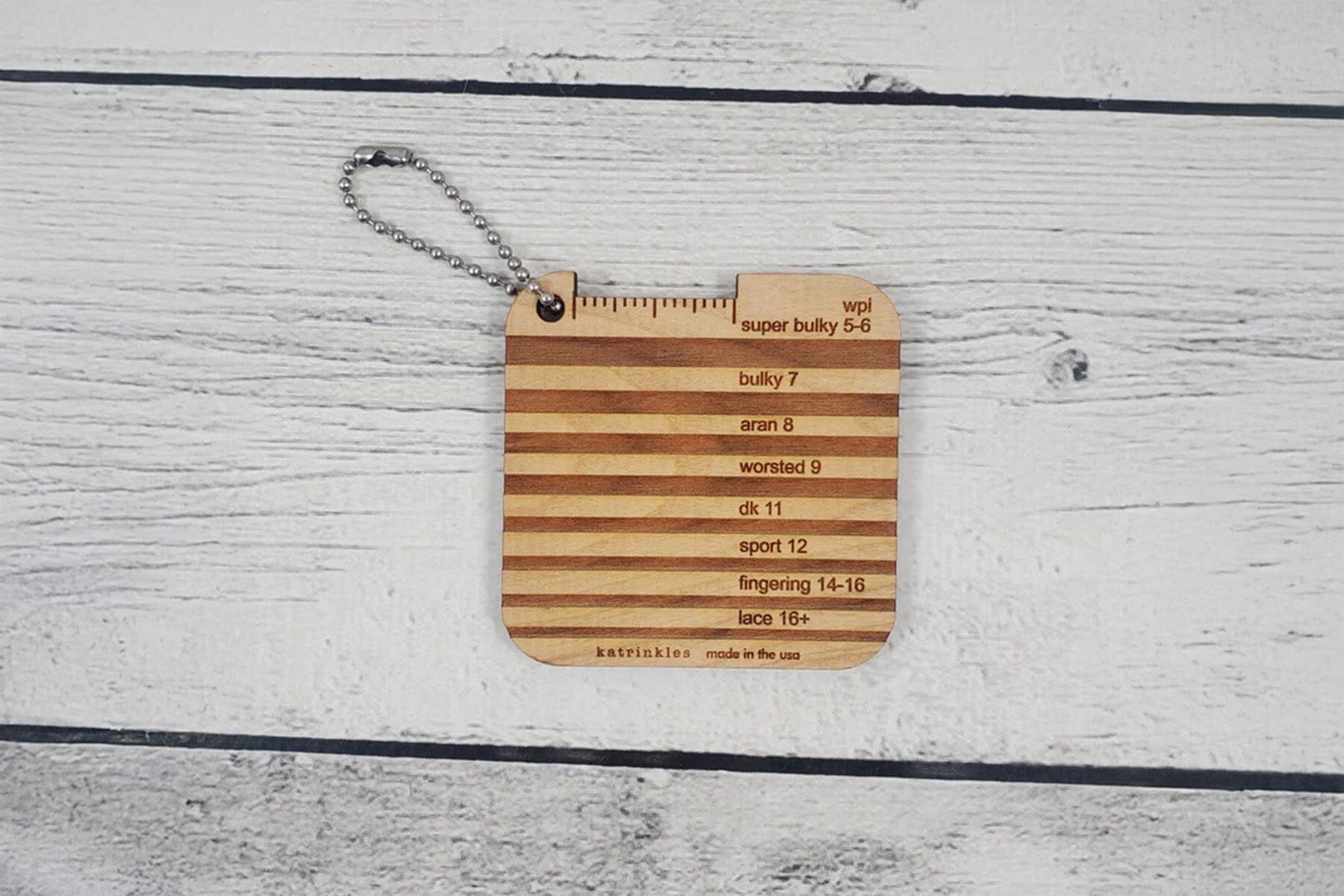 Loop your yarn around the inch-wide notch to measure in wraps per inch, or lay it in the marked grooves to see what yarn weight it corresponds to: super bulky, bulky, aran, worsted, dk, sport, fingering, or lace. Fiber artists of all types will love this convenient addition to their fiber tool kit.