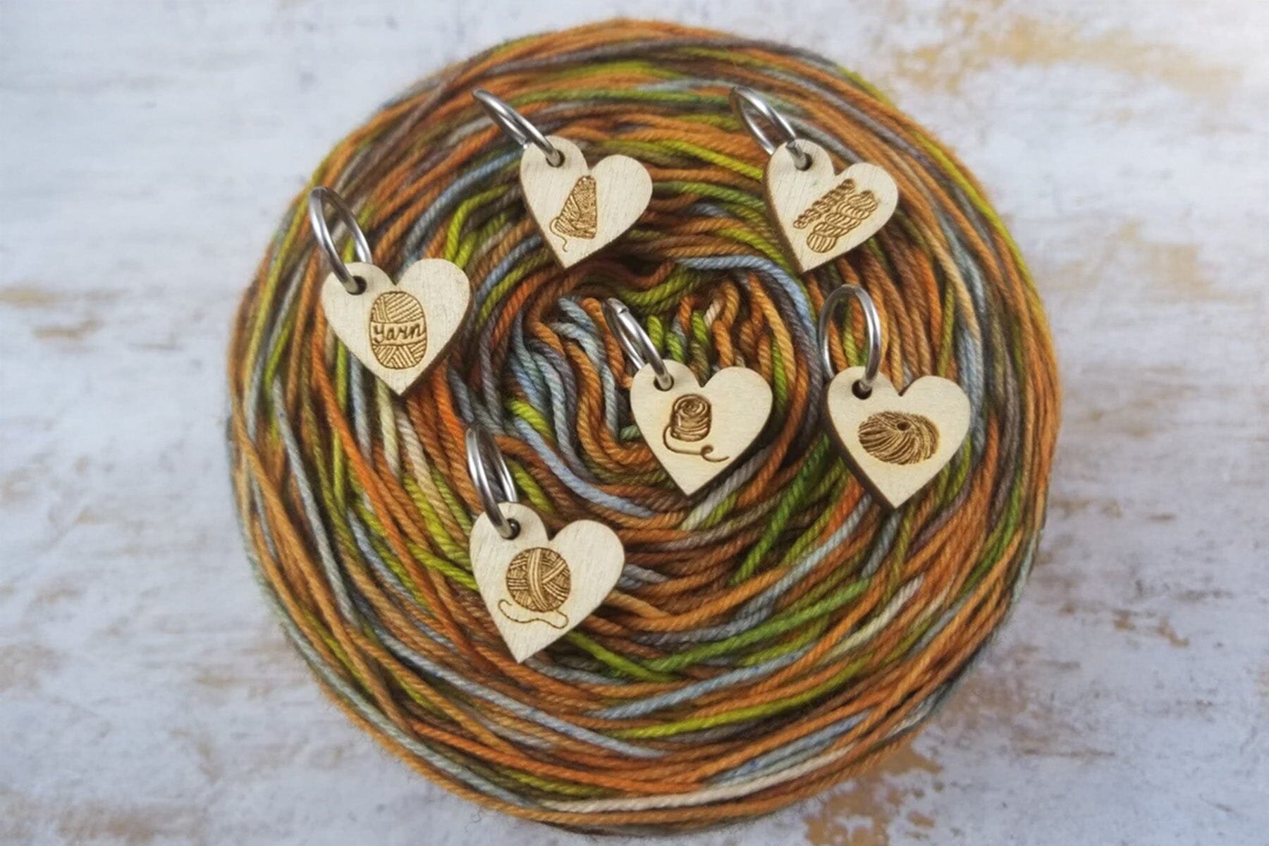Shop Candy HeartsWho doesn't love yarn!? This cute stitch marker set includes 6 of our favorite yarn configurations, including a ball, cone, cake, skein, center pull ball, and a commercial skein.