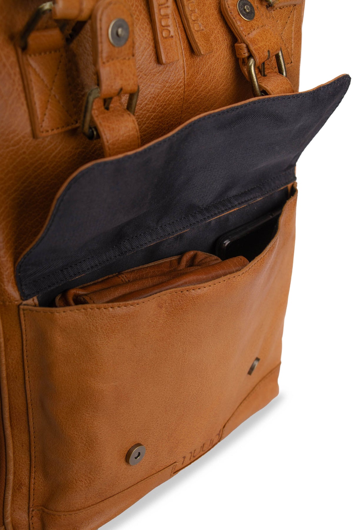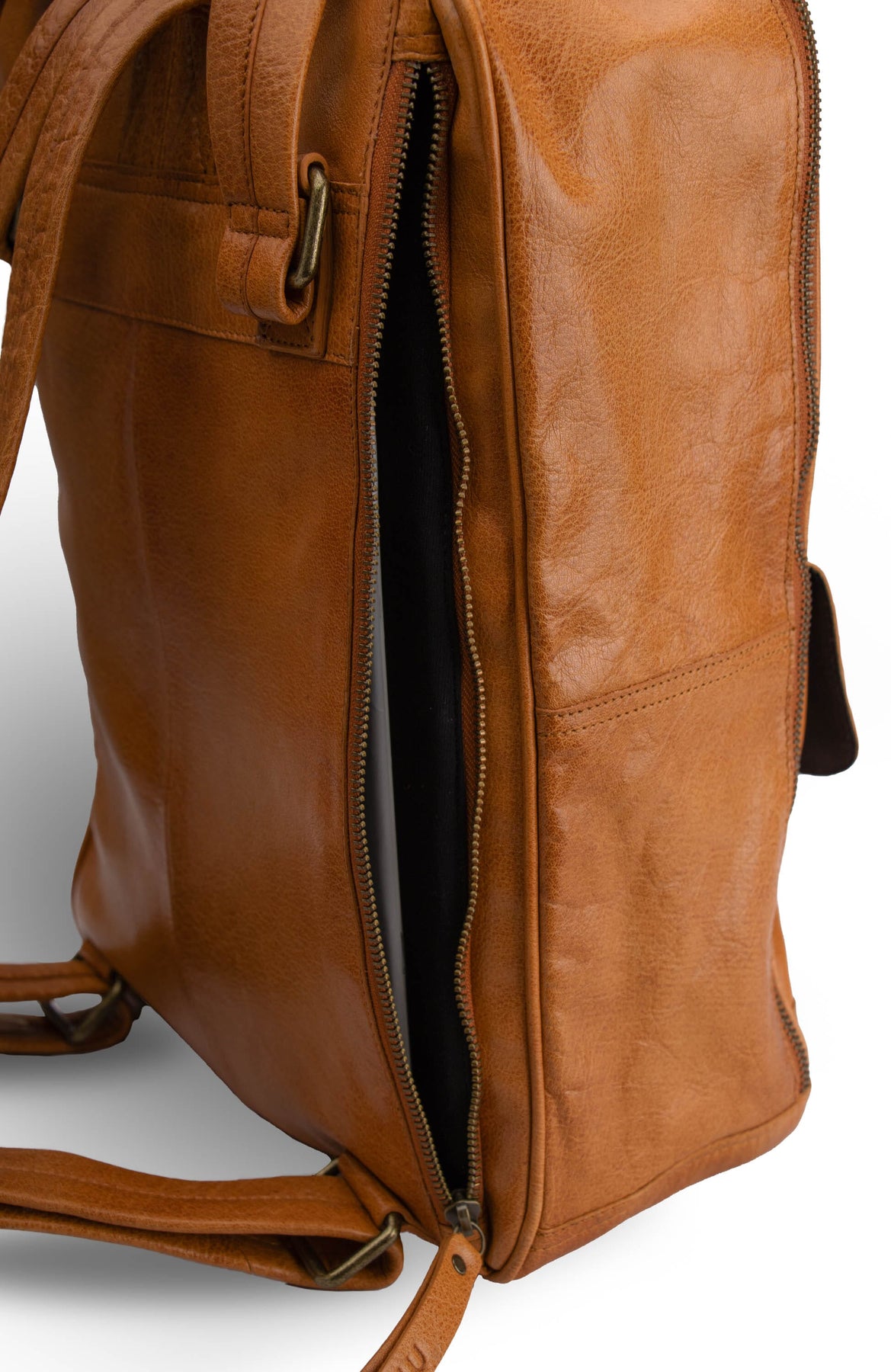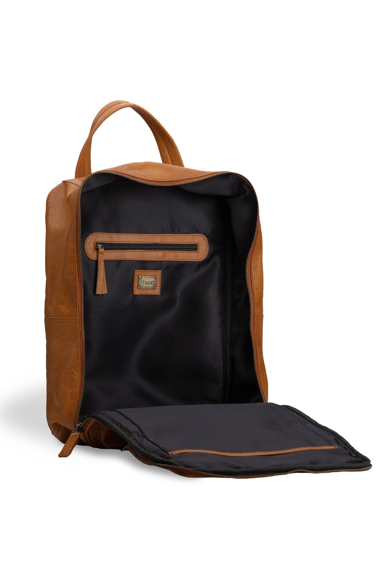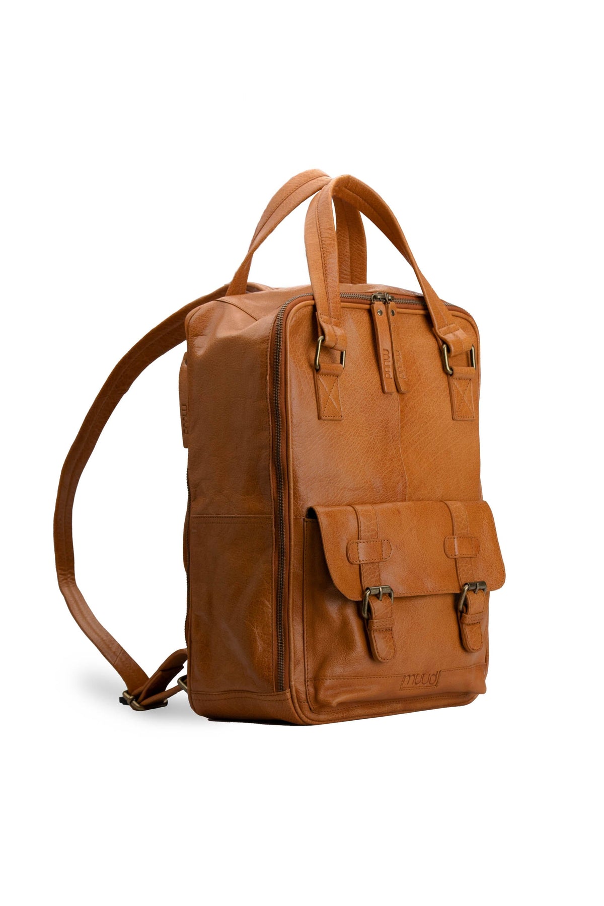 Shop Farmers MarketHandcrafted Leather Backpack Geogina from muud is an elegant and functional backpack, designed to meet the needs of both everyday life and work. Handcrafted from genuine leather, it combines timeless elegance with practical features, making it a reliable companion for many years to come.