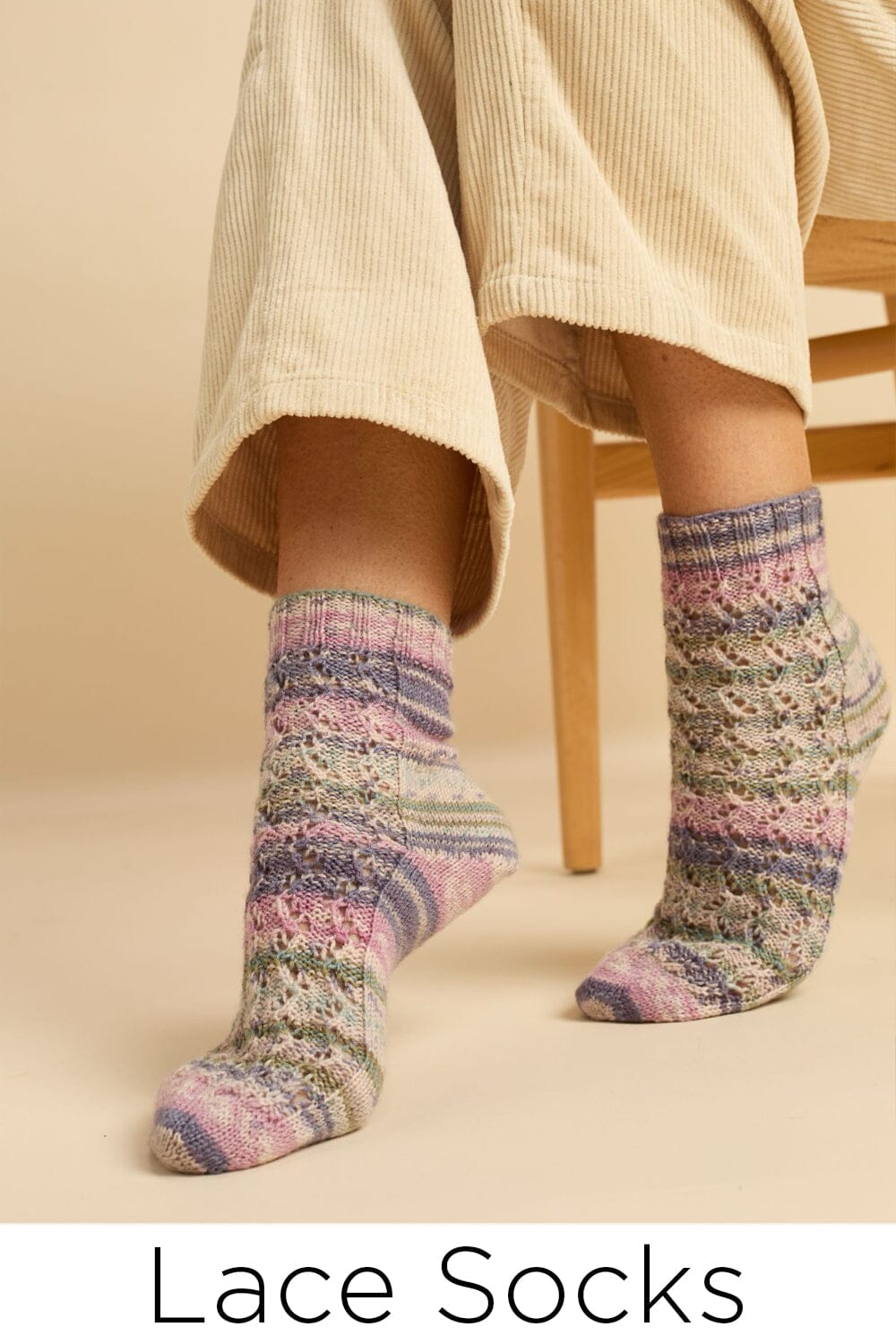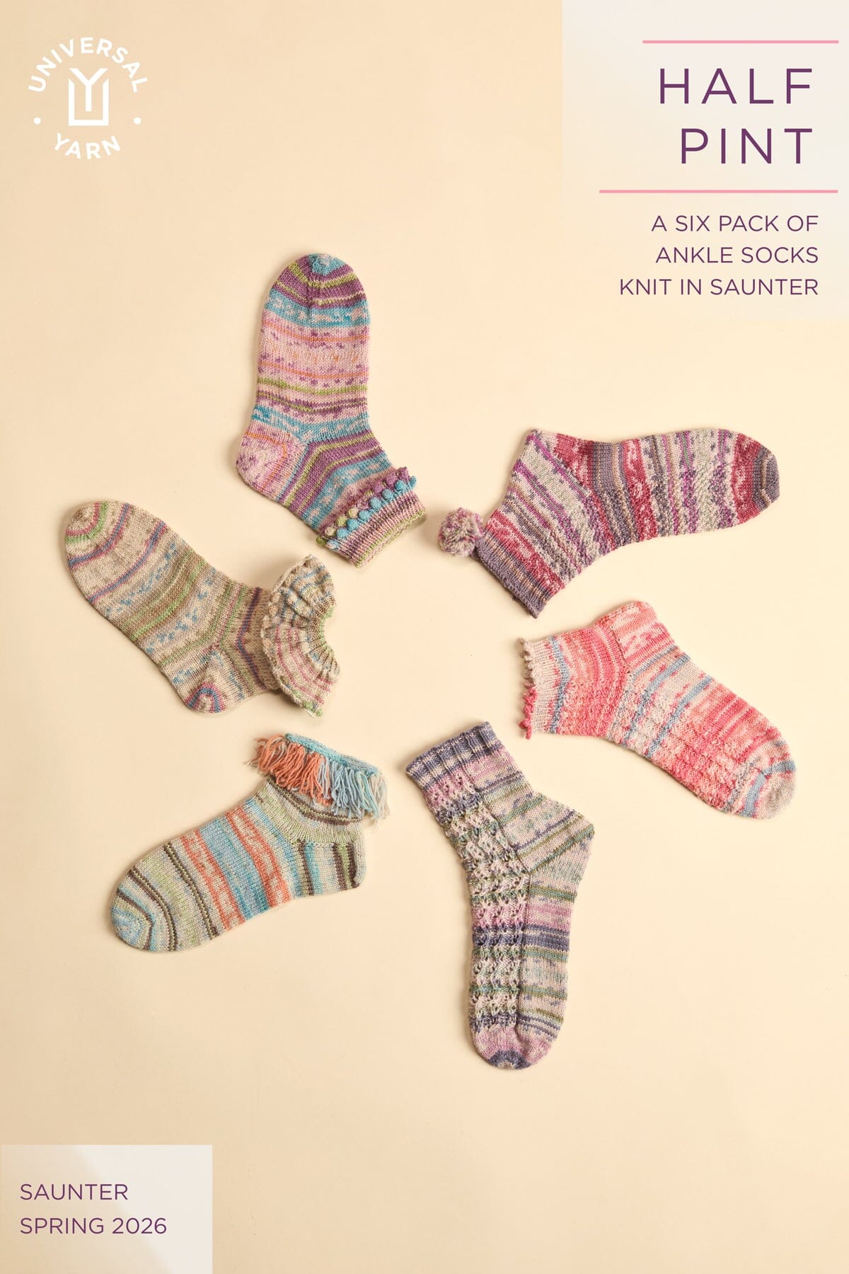 A joyful parade of color, texture, and charm, the Half Pint sock collection celebrates everything we love about cozy making. Each pair is crafted with Saunter, a self-patterning yarn that does all the artistic heavy lifting, painting stripes, speckles, and soft color shifts as you stitch.