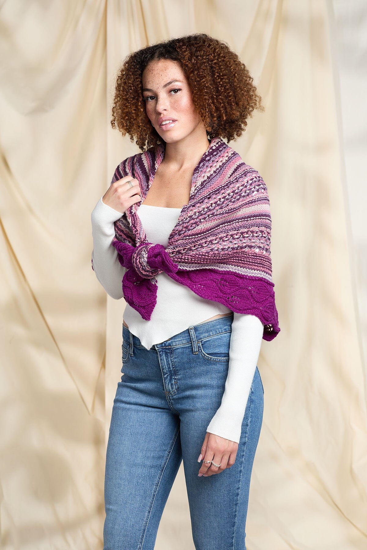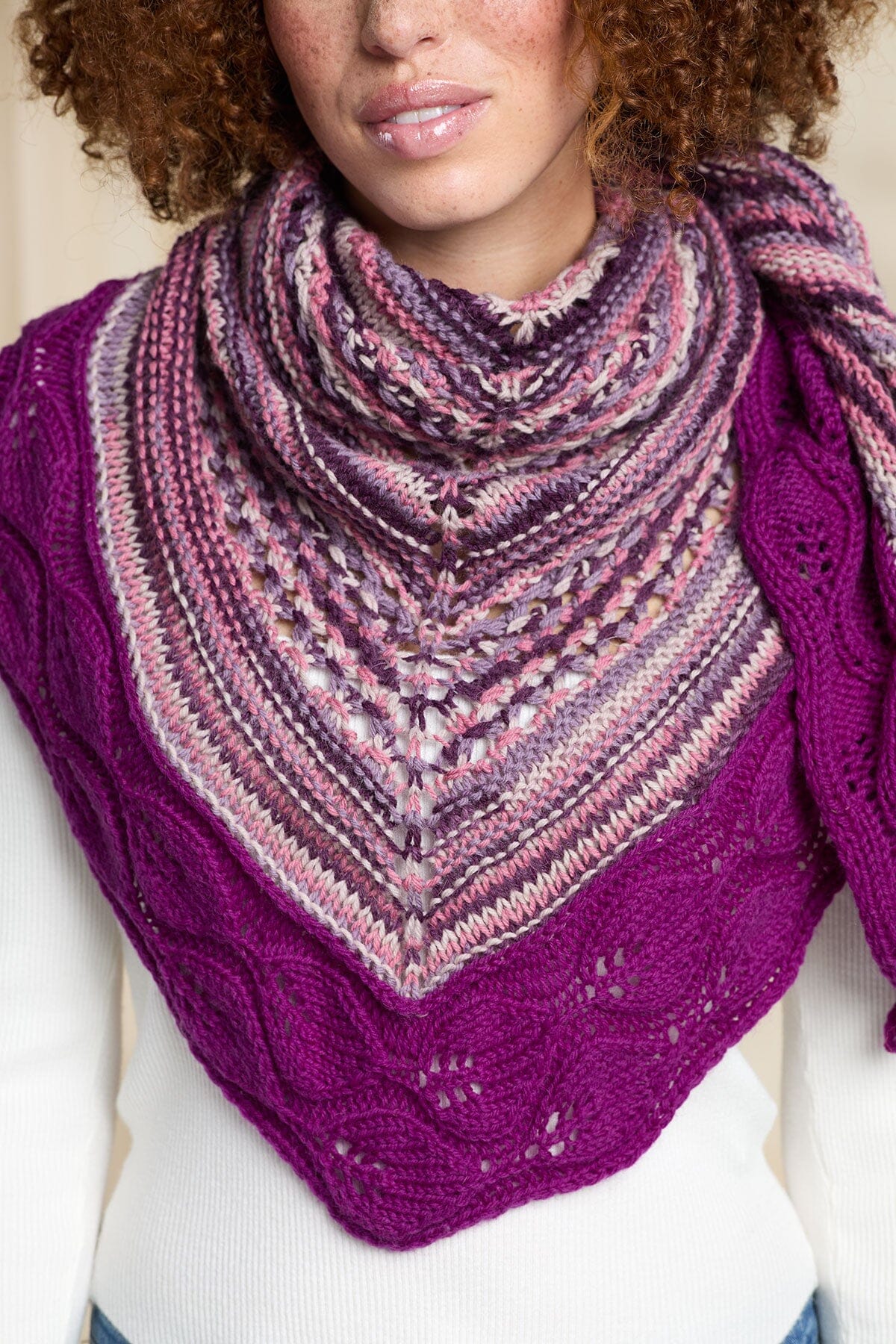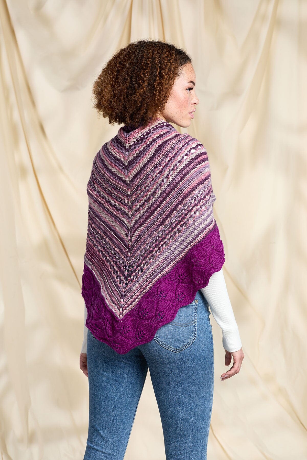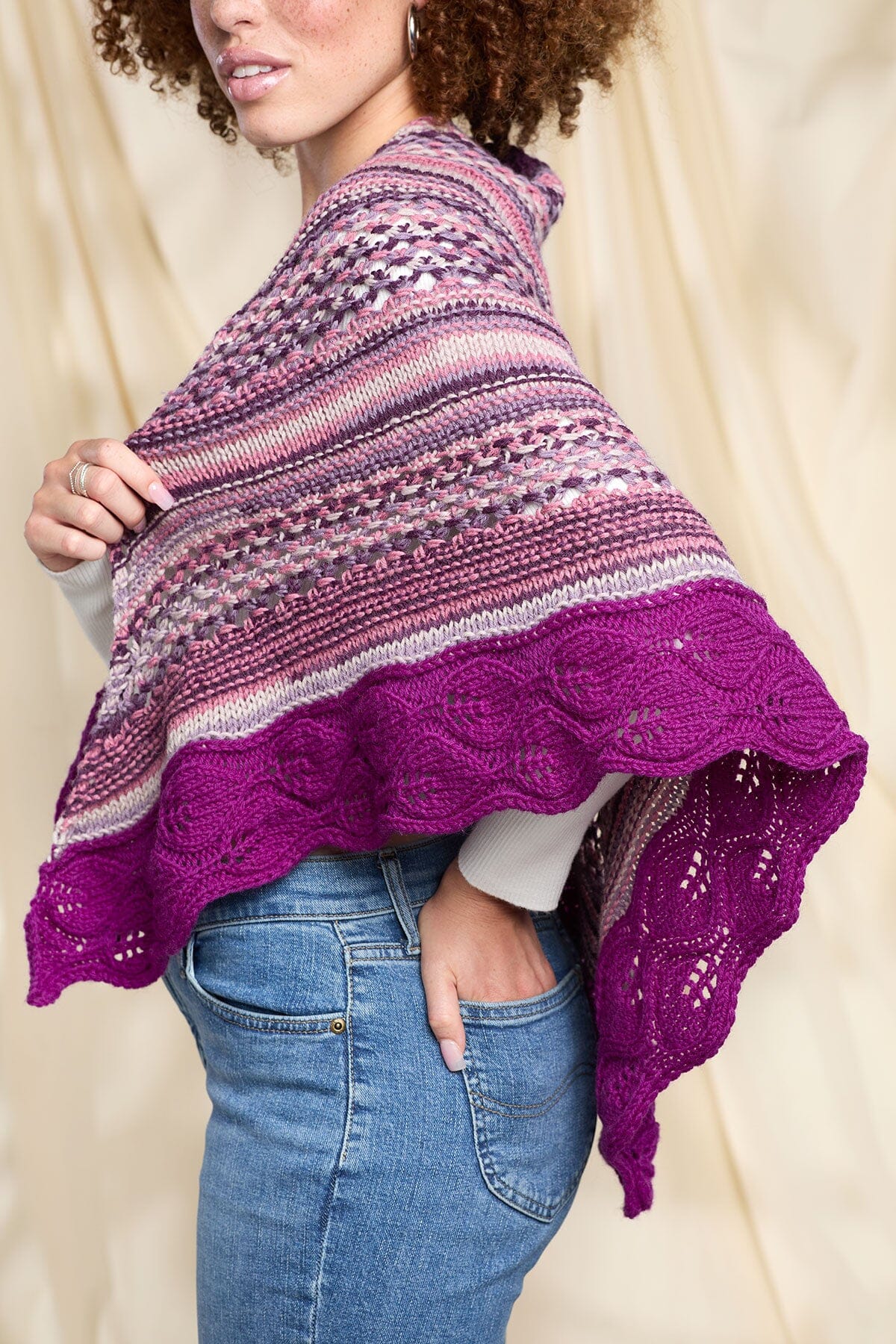 Like a rosebud in springtime, this pattern brings new life to a perennial favorite. The newly revamped In the Garden Shawl Deluxe combines texture and lace with a self-striping yarn to create a uniquely beautiful piece that you’ll reach for again and again.