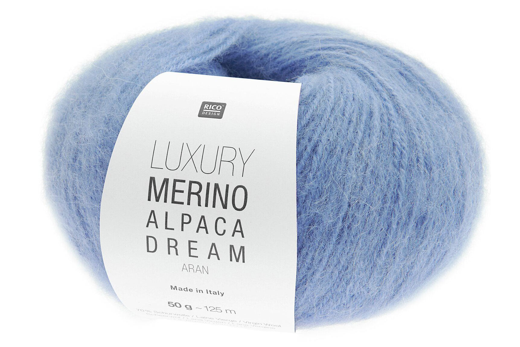 Shop Coral DreamsLuxury Merino Alpaca Dream Aran combines a voluminous merino yarn with incorporated, soft Alpaca fibres. The subtle but noticeable alpaca fleece emphasises the individual stitches, enveloping them with its warming structure. This creates a beautiful stitch pattern that is suitable for a wide range of knitting patterns with a soft, fluffy surface.