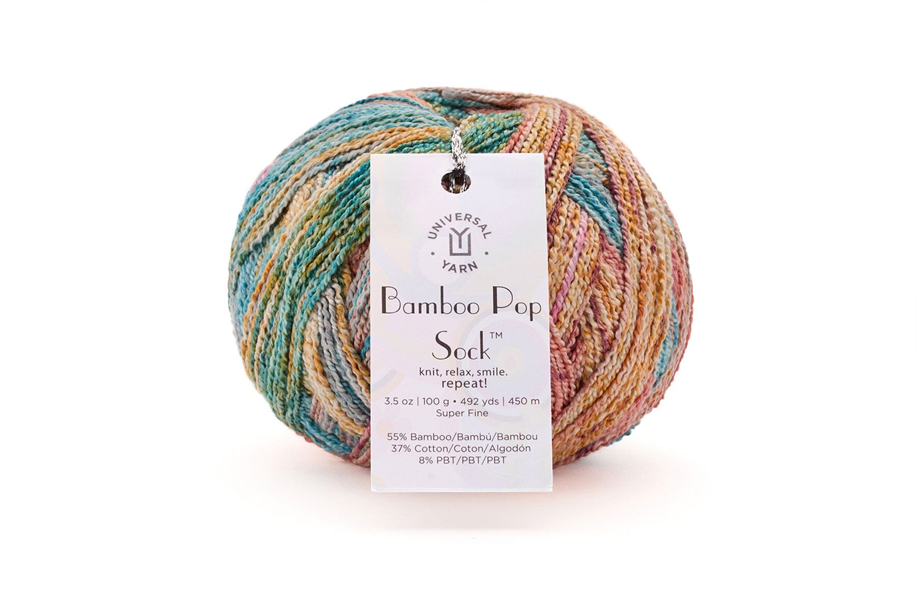 Stretchy, vibrant, and colorful, self-patterning Bamboo Pop Sock is 100% wool-free. Great for cheerful socks, accessories, baby knits, and more!