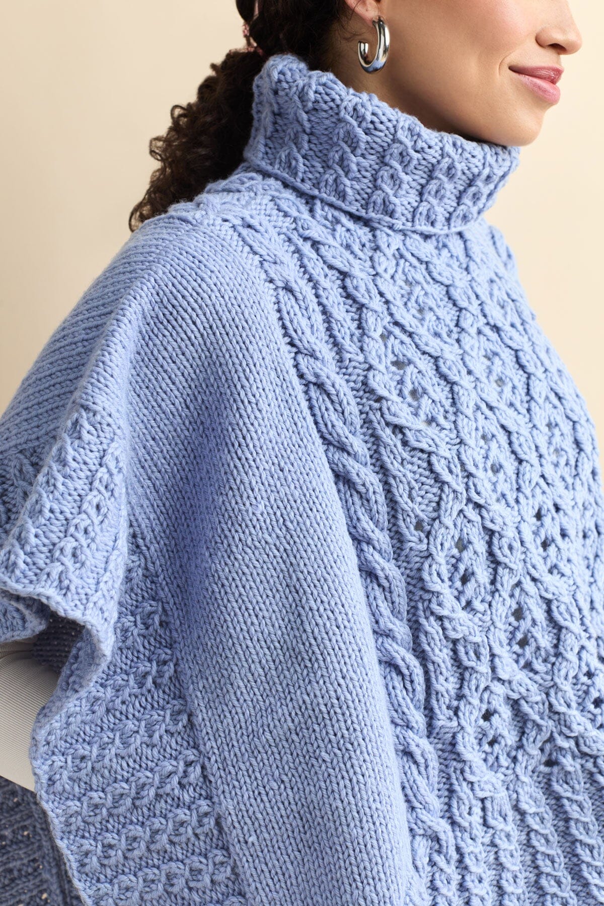The beloved Catawba River Poncho gets a makeover in soft and springy Deluxe Bulky Superwash. This yarn lends exquisite stitch definition to the poncho’s elaborate cable motif, bringing depth, texture, and rustic beauty to this timeless piece.