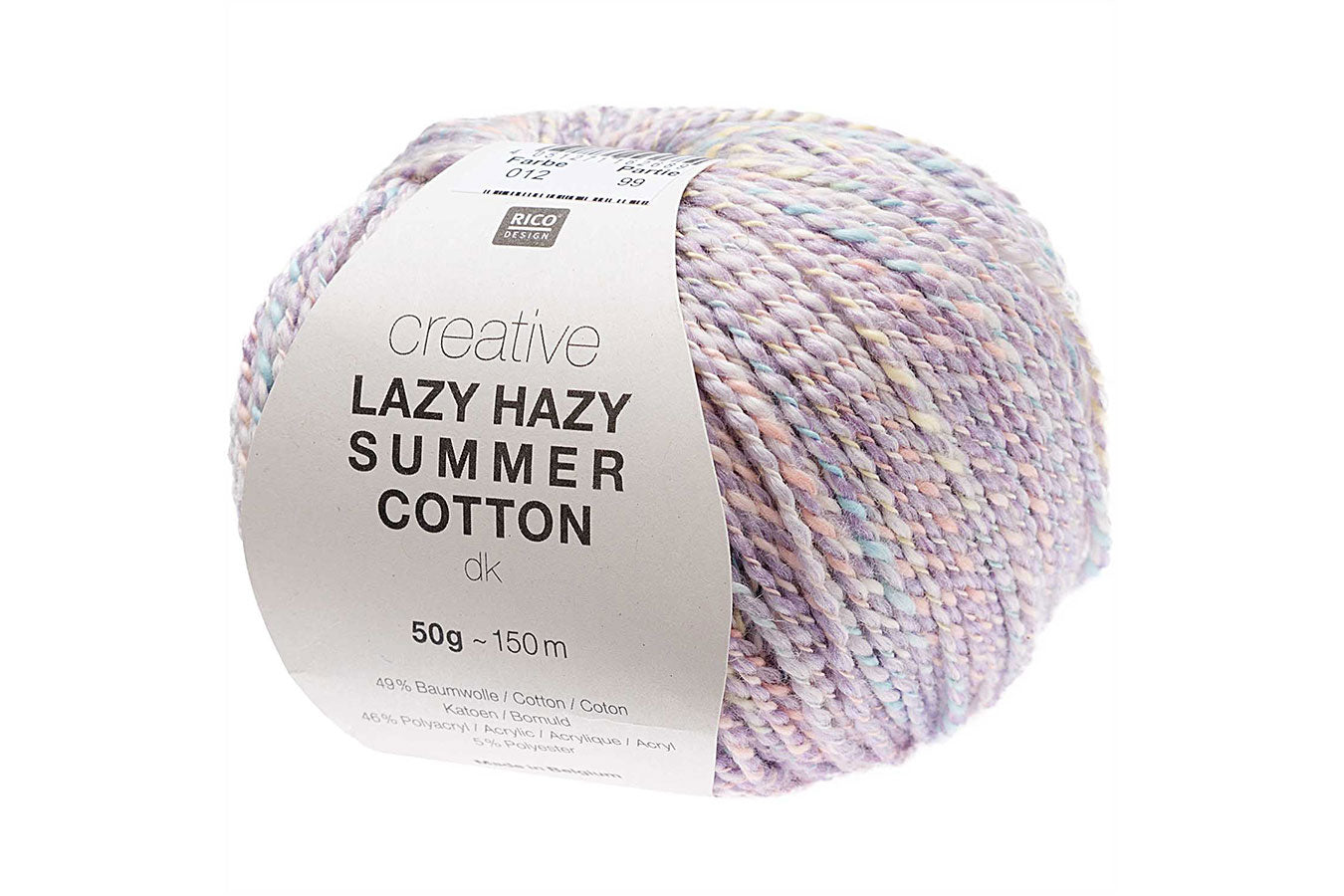 Explore muudRanging from soft pastels to rich, saturated tones, Rico Design’s Creative Lazy Hazy Summer Cotton DK is an exciting addition to your summer yarn stash. Its basic color is spun with a print ply, for bright variegated colors that create gorgeous garments and accessories. This blend of cotton, acrylic, and polyester washes and wears well, so you’ll enjoy your projects for a lifetime!