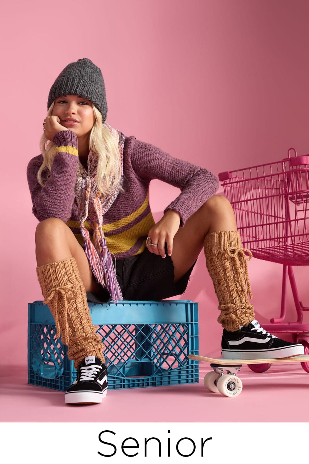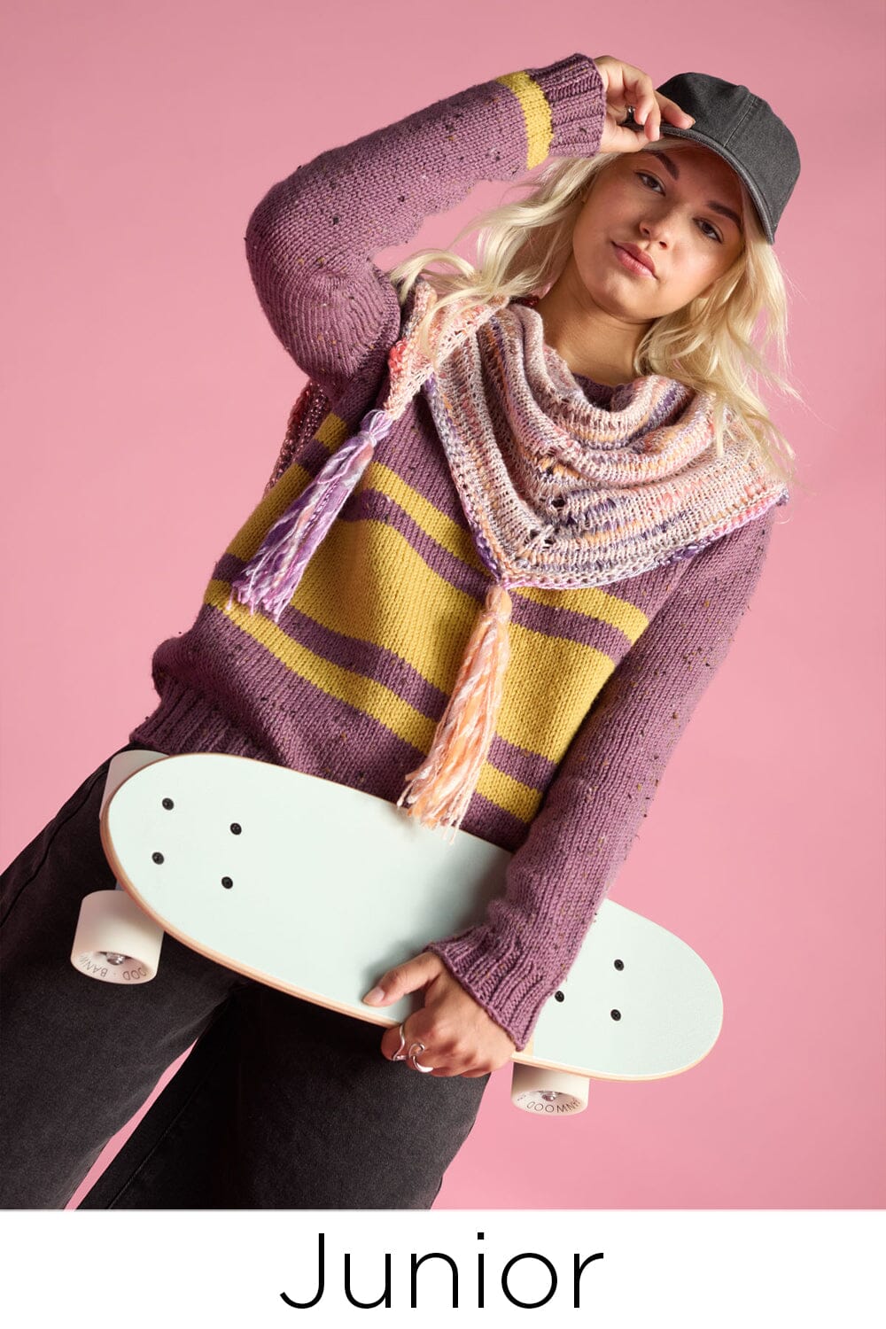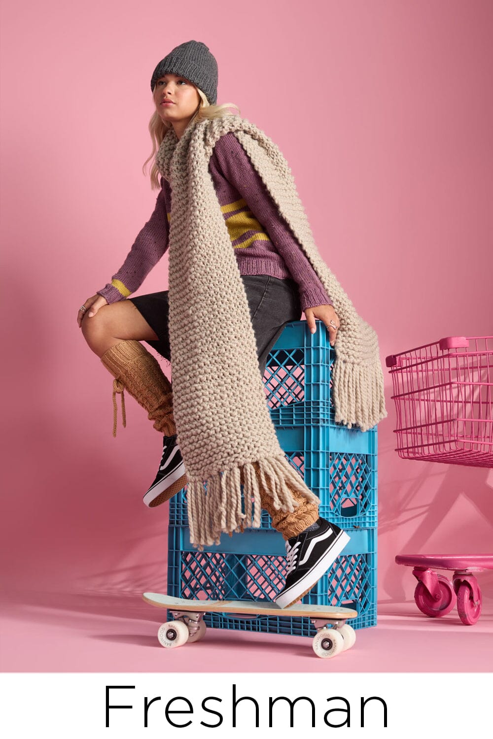 Once you’re comfortable, try your hand at a beautifully textured triangular shawl in Bamboo Bloom Handpaints to explore increasing stitches and working with a multi-textured yarn. Then, add some fun to your repertoire with a pair of retro-inspired legwarmers in Uptown Worsted, great for mastering ribbing and knitting small circumferences in the round.