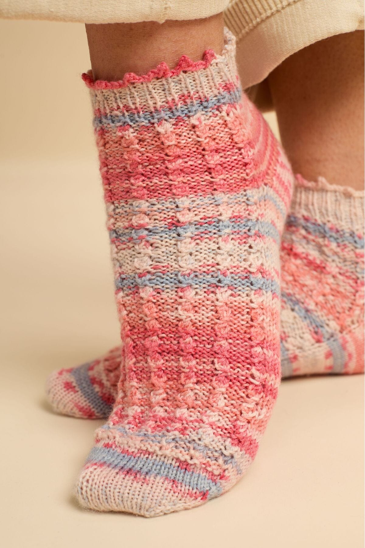 Saunter’s soft hand and crisp stitch definition bring the Picot Socks to life. Simple yet quietly luxurious, with a beautiful texture and adorable picot edge, these socks are as fun to knit as they are to wear.