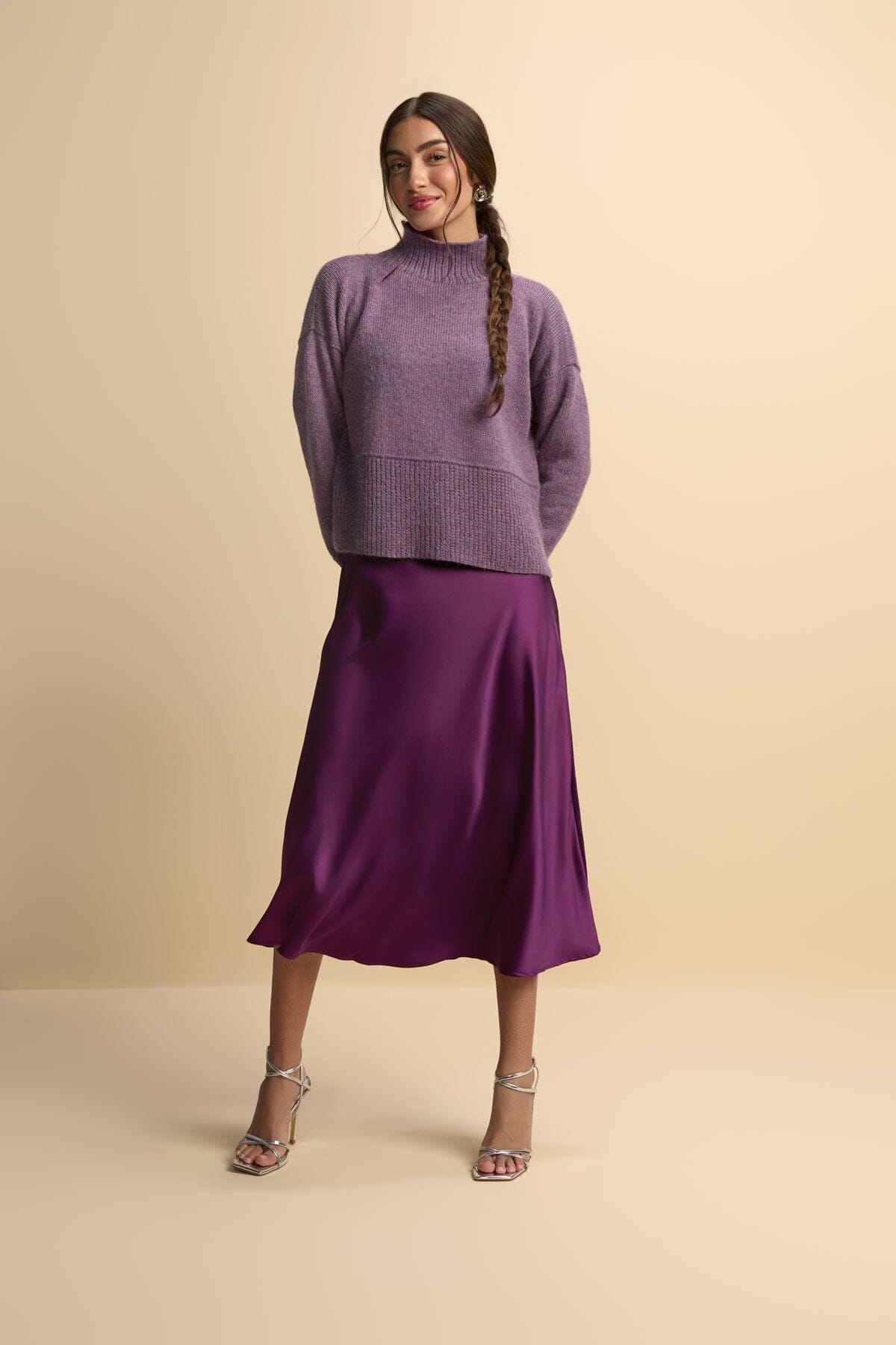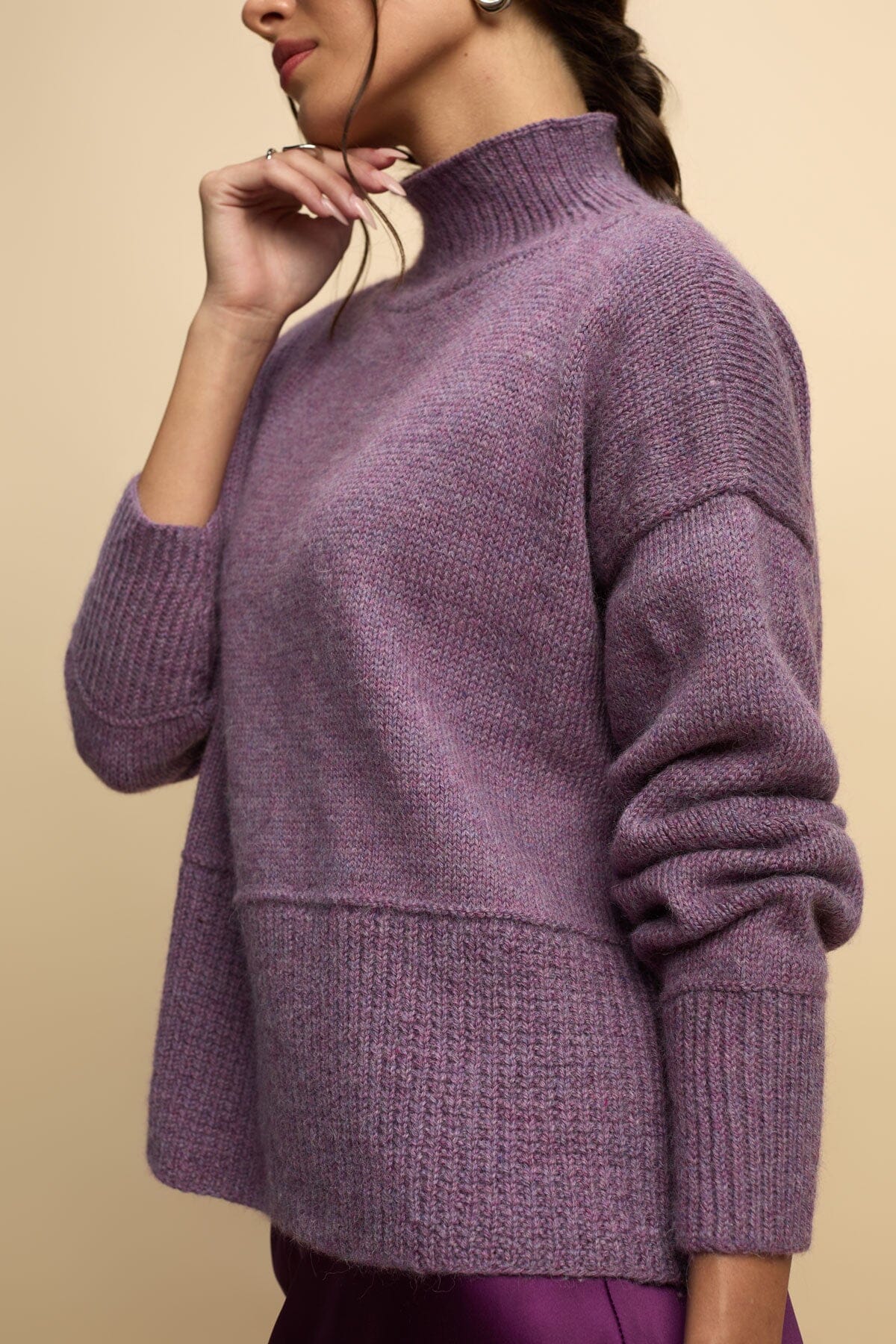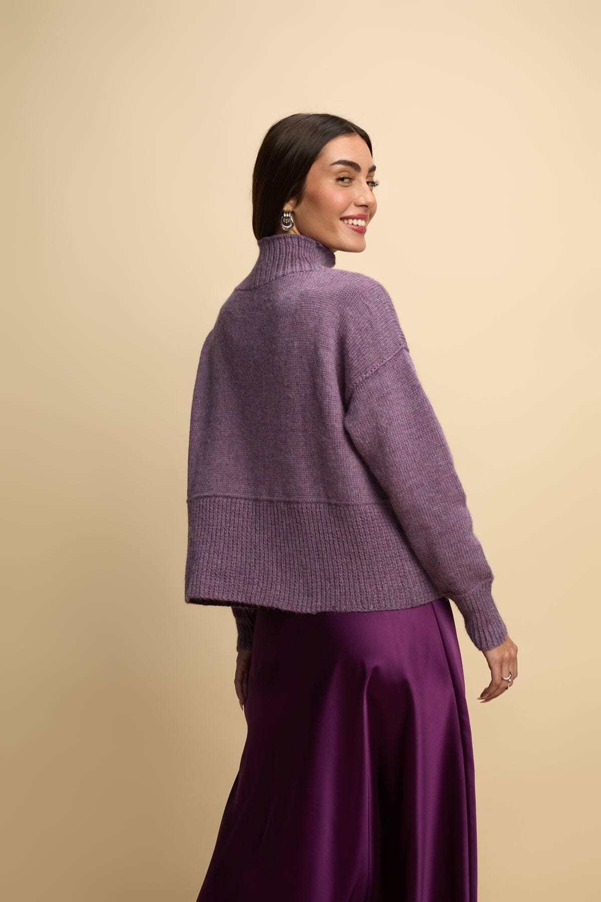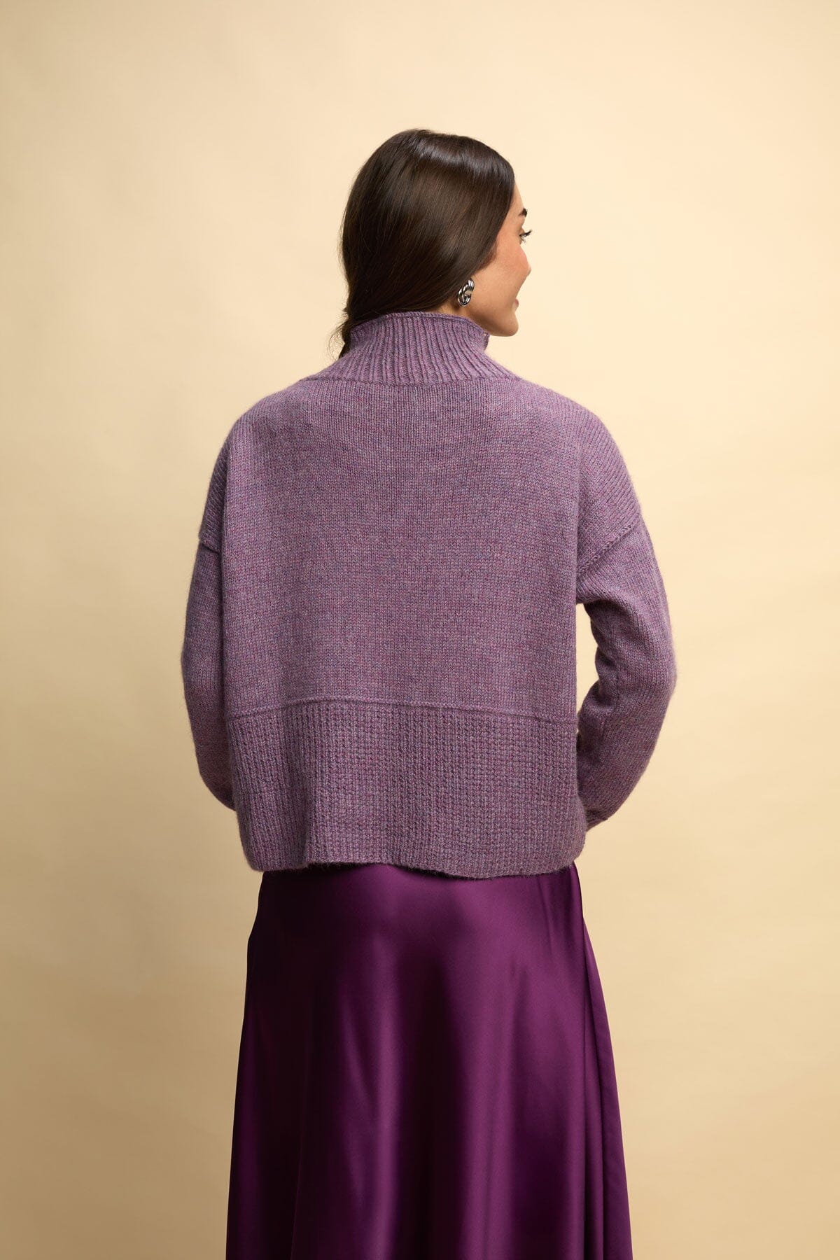 Boxy, balanced, and subtly textured, Stillwater is a study in quiet luxury. Different types of ribbing add dimension, while smooth stockinette flows effortlessly from shoulder to cuff. With a generous turtleneck and relaxed drop-shoulders, this piece layers like a dream, but also makes a serene statement all on its own.